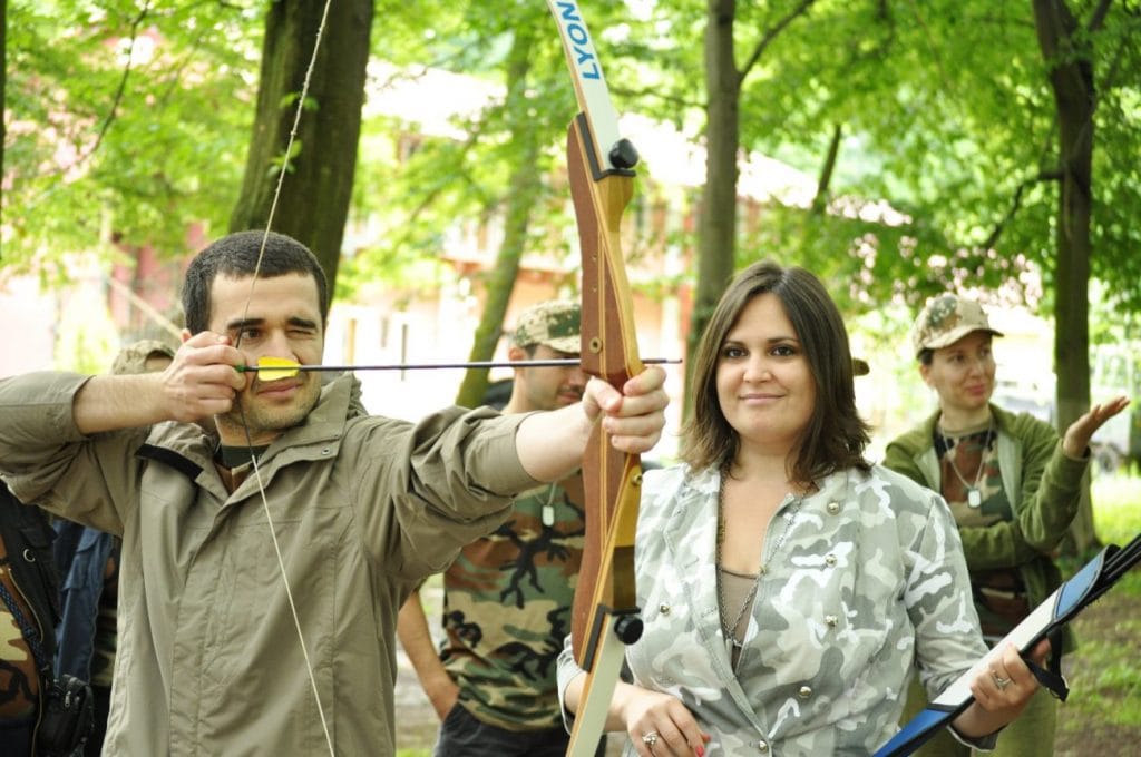 Acum 9 ani, am început să lucrez ca promotor pentru cel mai mare parc tematic din România: Arsenal Park. Responsabilitatea mea în acel moment era să merg la companii și să prezint oferta Arsenal. Pentru a face acest lucru, trebuia să cunosc fiecare aspect, de la cazare la restaurant la activități de agrement. Am trecut pe la fiecare departament și am învățat enorm. Mai ales de la colegul meu, Olav Bagyo. Olav a fost instructorul Arsenal până anul trecut. Practic, când s-a deschis parcul, a fost omul de bază care a venit cu structura de activități. Cu background militar și cu înclinații pentru entertainment, Olav a fost omul potrivit la locul potrivit. Imaginea parcului, cel puțin în primii ani, cu tematică exclusiv militară. L-am urmat ca aghiotant la toate activitățile, l-am filmat, l-am pozat, l-am citat, am putut transmite atmosfera mai departe în mod corect. Ceea ce era esențial. La un moment dat, veneau solicitări peste solicitări de teambuilding, grupurile s-au aglomerat și el a avut nevoie de mine implicată activ într-o activitate. M-a învățat să trag bine cu arcul, m-a încurajat să mă documentez, mi-am făcut un program și a avut încredere în mine să îmi lase pe mână clienți la tir cu arcul.