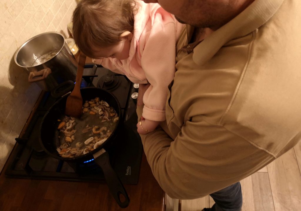 Închei prin a sublinia că iubesc mesele în familie și că mă strădui să gătesc și eu bine. Și amintesc de un clip, văzut mai demult pe Facebook, cu părinți pe de o parte și copii de cealaltă. La întrebarea “Cu cine ai vrea să iei masa, dacă ai avea posibilitatea, din toată lumea?”. Părinții au menționat numai persoane publice, în timp ce copiii au spus că vor să ia masa cu părinții lor. Îi înțeleg perfect! Și sper ca Draga mea să gândească la fel ca ei și la 50-60 ani. Pentru asta, o să fac tot posibilul să îi ofer mâncare sănătoasă și gustoasă, o atmosferă frumoasă și multă dragoste la fiecare masă.